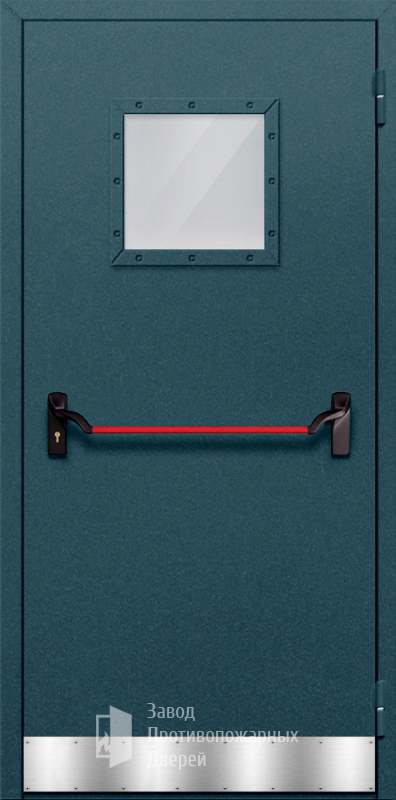 Маркировка Противопожарная Однопольная дверь с квадратным стеклом ДПМ-01-EIW15 с антипаникой