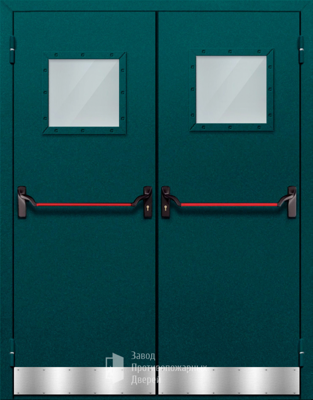 Противопожарная Двупольная дверь с квадратным стеклом ДПМ-02-EIW60 с антипаникой |